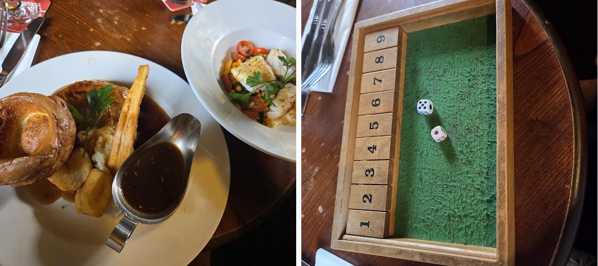 Love this quirky pub! Went in on a Sunday for food...not thinking about the time and Sunday dinner. They were busy but the staff were lovely and friendly and we managed to get a table with very little wait. The food was amazing, I had the roast and husband had the fish dish. 2 courses were very reasonably priced. Would have had desert but the starters and roast finished me off. Funky trinkets on the walls and ceilings and some games you can use.